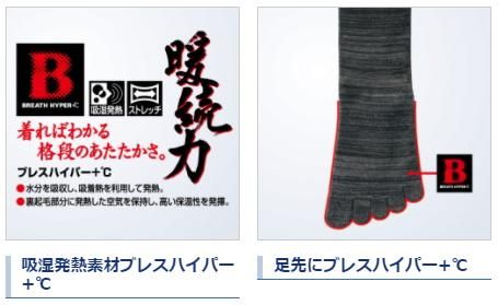 ●暖かさを感じる足先にブレスハイパー+℃素材を配置