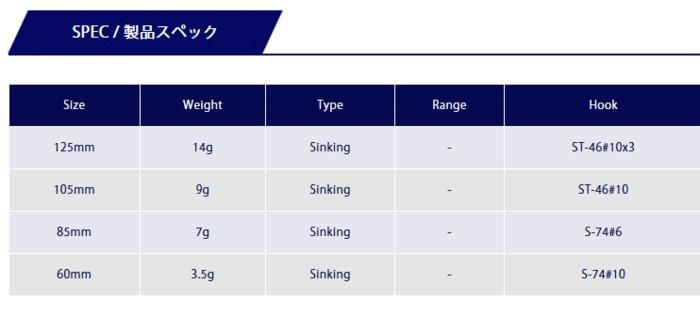 アイデア次第で様々なベイトを演出しオールシーズンで「使える」ルアーと言えよう。基本設計は中空ボディ底面部に専用設計の極細ウエイトを搭載し、ボディの空気抵抗の少なさと低重心化の両立で、美しい飛行姿勢をキープ。