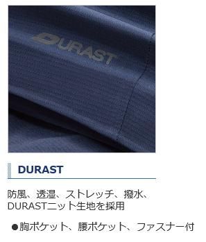 防風、透湿、ストレッチ、撥水、DURASTニット生地を採用