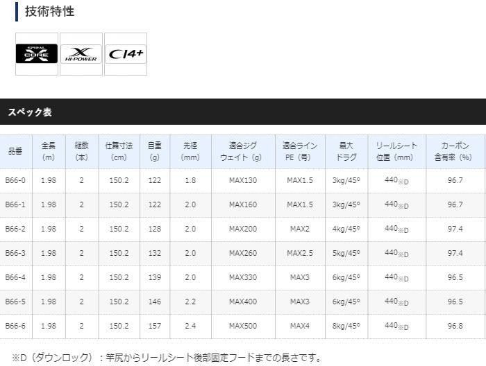 シマノ 20 ゲームタイプスローJ B66-6 (ベイトモデル) / ジギングロッド / shimano 【本店特別価格】