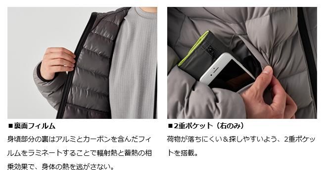 ■アルミの輻射熱とカーボンによる蓄熱性で、身体の熱を逃がさない