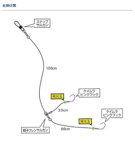 ■オニカサゴに高アピールするケイムラピンクカラームツ針を使用。ヒネリなしの針を使用していること、またサクサススイベルを使用することで糸撚れしにくく、トラブルが激減し、快適に釣りが楽しめます。全長は 180cmで誘いを入れるとエサがしっかり動く長さとなります。快適オニカサゴ仕掛けKP SSシリーズはお求めやすい空バリタイプとしっかりエサをアピールするタコベイト付きがあります。状況に合わせてお選びください。