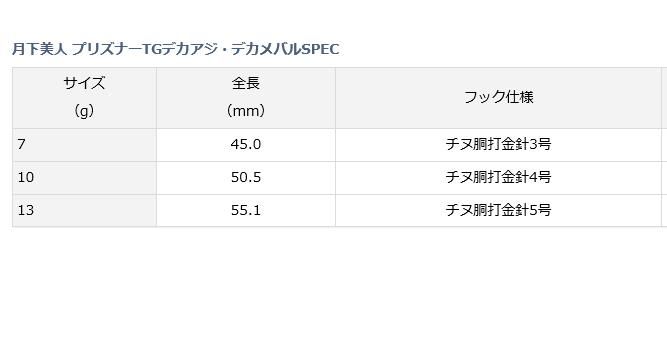 商品情報 ダイワ DAIWA グローブライド 月下美人 プリズナーTGデカアジ・デカメバル(DADM) / ルアー メタルジグ