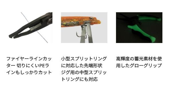 PEラインもカット可能な蓄光素材のグリップを使用したスプリットリングオープナー付き万能プライヤー