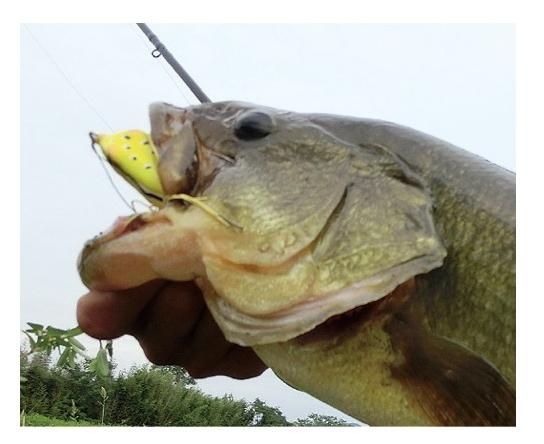 (2)「ガマガエルポップ」は、そのポッパーマウスをやや小さめに設計しているため、引っ掛かりの無いスムースなボディと相まって、フッキングしやすくしています。