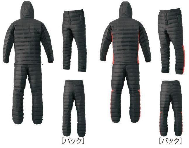 ●本体には667フィルパワーダウンを( ダウンジャケット) 約190g、( ダウンパーカー) 約190g、( ダウンスーツ) 約380g 充填、厳寒期でもしっかりと体を包み込み完璧な防寒性を発揮します。