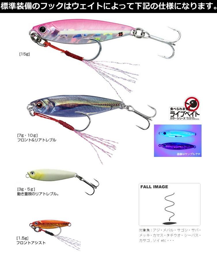ライトゲームにマイクロジグのブームを巻き起こしたジグパラマイクが、生命を吹き込まれたライブベイトカラーとなって登場です。ジグパラライブベイトは、魚が居るのに釣れない…時合いが過ぎて釣れなくなった…という時でも、まさにライブベイトを餌として使用しているときの様にアタリが継続する事実が認めれれました。そんな餌のようなライブベイトカラーのジグパラマイクロには、マヅメやボトム付近の日光が届きにくい時間に効果のある「ケイムラ」塗装を施しました。ジグパラマイクロは、日中もマヅメも目立ち度抜群の究極の小魚となって誕生いたします。