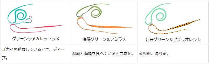 ■Mr.紅牙ことタイラバ船海竜船長、中井一誠氏監修のもと彼の豊富な経験値から導き出した”本当に釣れるパターン”を厳選。それぞれ人気のヘッドカラーにベストマッチする3本をセットしました。