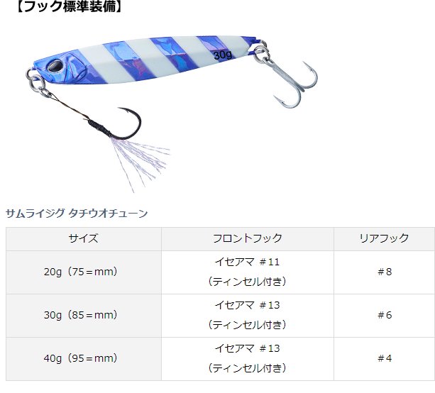 商品情報 ダイワ DAIWA グローブライド サムライジグ タチウオチューン / ルアー メタルジグ ソルトルアー タチウオ 青物 フィッシング