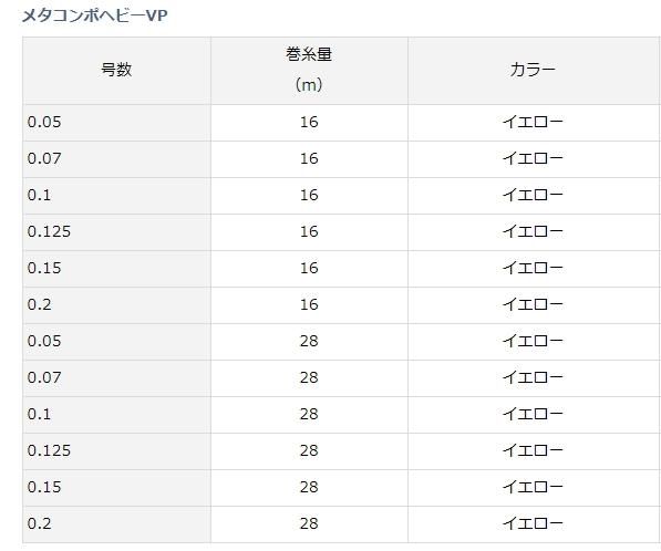 ■メタコンポヘビー11m→16m、21m→28mと長尺になって価格も据置きのバリューパック(VP)