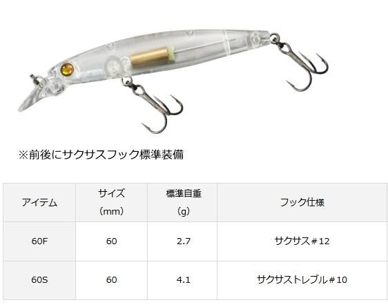 60mmという比較的長めのボディでありながら形状を極力スリム化。これにより、通常の60mmボディのルアーよりもフィネスなアプローチが可能。空気抵抗も少なく、飛距離も十分に稼ぐことができる。