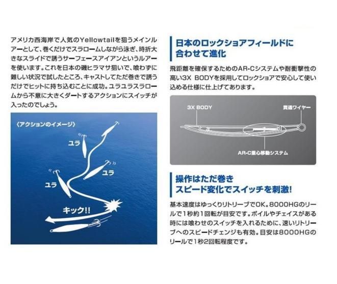 飛距離を確保するためのAR-Cシステムや耐衝撃性の高い3X BODYを採用してロックショアで安心して使いこめる仕様に仕上げてあります。