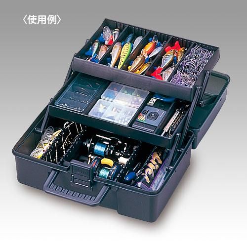 本体は深底構造でビッグサイズのリールも収納でき、収納力のある上下2段式トレーを合わせ持つ、高収納型タックルボックス。