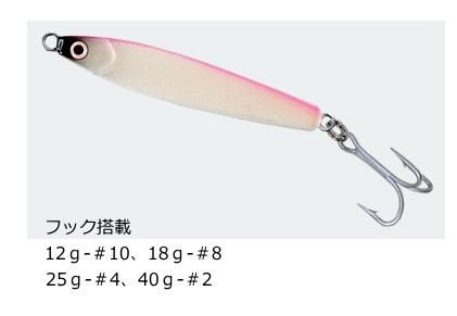 後部中心に設定されたボディを鮮やかな反射光を生むクラッシュレーザーシートで武装し、シャープな操作性と高い集魚力で優れた釣果を生み出す、本格のバーチカル&スイミングジグです。