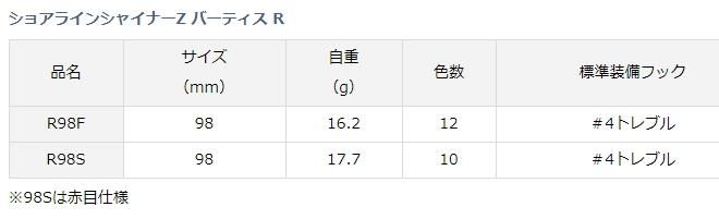 商品情報 ダイワ DAIWA グローブライド ショアラインシャイナーZ バーティス R 98F・98S (DAIWA SHORELINE SHINER-Z VERTICE R) / ルアー ソルトルアー ミノー シーバス フラットフィッシュ