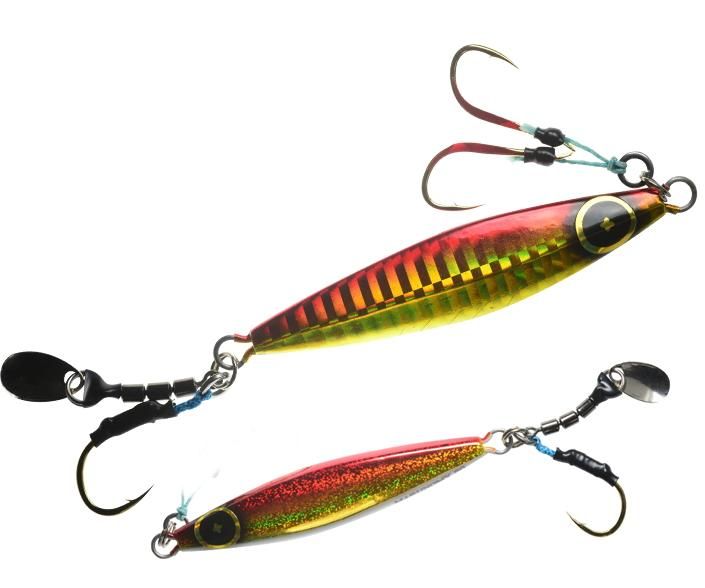 スモールサイズにこだわり、ボディサイズを極限まで抑えた丸呑みサイズのスーパーライト専用ジグです。ホログラムスピンブレードを装着したことにより、フラッシングと波動でターゲットを魅了するハイアピールモデルです。真鯛や小型青物、根魚を狙う際に特に有効です。