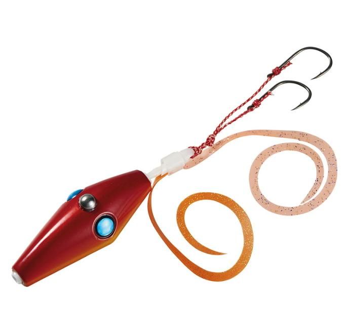 巻き抵抗を軽減するだけでなく、スリムで前後に延ばされたボディは、ネクタイの絡みも大幅削減。タッチ&ゴーをより確実なものとするタングステンセンサーによりボトムコンタクトをセンシティブにアングラーに伝えます。ユニットには、ハイスピードツインカーリーとワンサイズ大き目のフックを標準装備。掛けタイラバや、イワシベイトなど早いテンポで行うタイラバゲームに最適です。