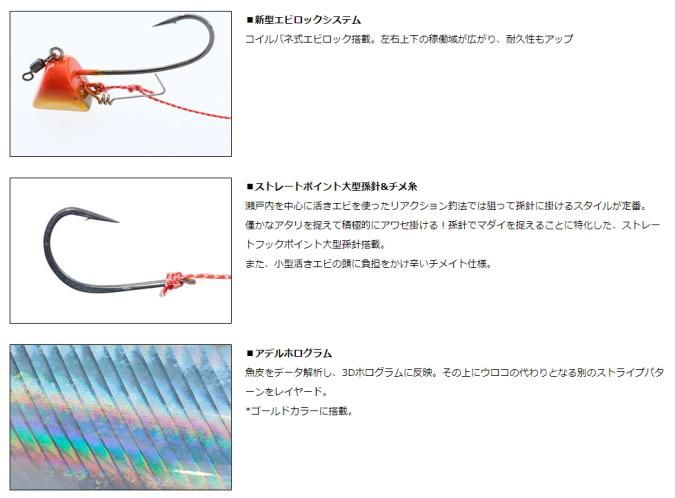 ・孫針でマダイを掛けることに特化した、ストレートフックポイント大型孫針搭載