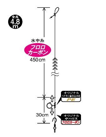 水中糸を4.5m、中ハリスと水中糸をチチワで接続するオールフロロカーボンのシンプルな定番の張替仕掛です。ハナカンは「楽勝ハナカン」、サカサは「楽勝ササ」を採用。扱いやすさ抜群です。