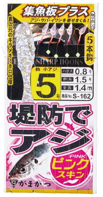 がまかつ 堤防アジサビキ ピンクスキン 集魚板プラス S-162 5本鈎 (6号) / 仕掛け (メール便発送可) / 釣具 【本店特別価格】
