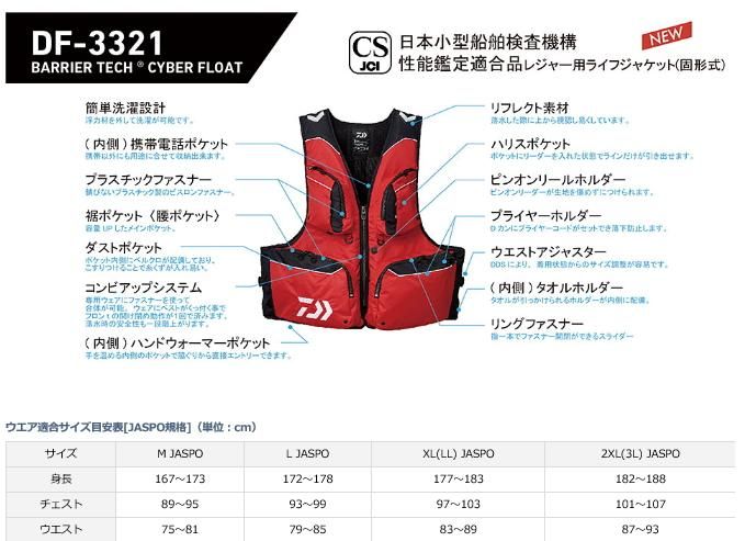 ダイワ バリアテック(R) サイバーフロート DF-3321 レッド XL (LL)サイズ / 救命具 【daiwa】 【釣具】 (SP) 【本店特別価格】
