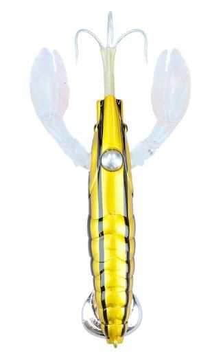 マダクは、ワーム素材でできた爪とファインワイヤーで作られた専用半傘タイプカエシ無しトリプルフックがボディに配されており、1本のアルミ製割りピンで止められている。