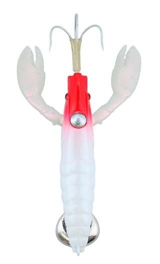 マダクは、ワーム素材でできた爪とファインワイヤーで作られた専用半傘タイプカエシ無しトリプルフックがボディに配されており、1本のアルミ製割りピンで止められている。
