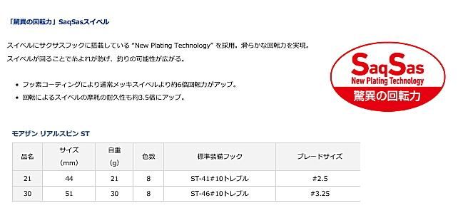 好評の「フック一体型着脱可能ブレードユニットシステム」のスイベル部分をSaqSas加工することで、よりスムーズな回転を実現。ブレードの回転軸やフック、ボデイのブレ、アクション時のボディの傾きを改善し、さらにスナップアイ部も大きくなり快適SPECにリファイン。カラーも刷新しました。