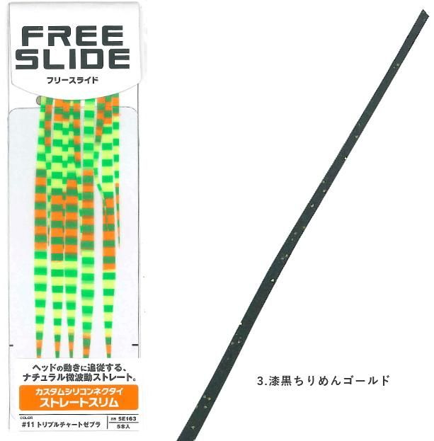 ハヤブサ フリースライド カスタムシリコンネクタイ ストレートスリム SE163 #漆黒ちりめんゴールド / メール便可 / 釣具 【本店特別価格】