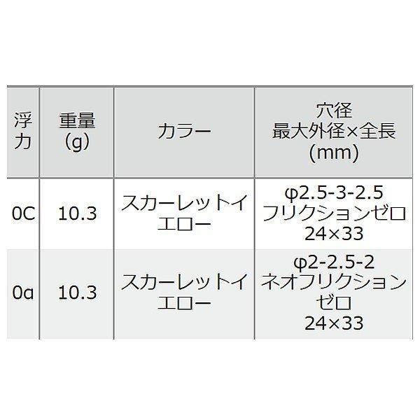 ●0C、0α2浮力で異なる糸穴径を設定。2浮力のラインナップの内、1000釣法専用の0C浮力は道糸へのアタリの表出を妨げないφ2.5→3→2.5mmの糸穴設計。少しだけ浮かせ気味に狙いたい場合の0αは、ウキへのアタリの表出力に優れたφ2→2.5→2mmという、釣り方に応じた最適な構造を採用しました。