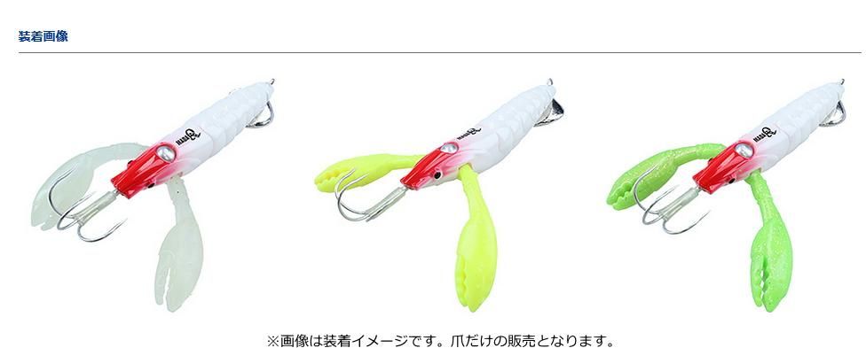 ワーム素材の爪は使用中に痛んでしまうこともあり、その時は交換が必要。また、爪の色を交換することでその日の当たりカラーを見つける楽しみ方ができるのもマダクの特徴。交換用の爪はマダクに標準で装着されているカラーと交換用爪専用のカラーをラインナップ。