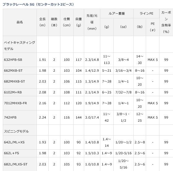 また、センターカット2PCSモデルでは軽さ・感度・レスポンス重視のSGのコンセプトに基づき、並継仕様。構造上バット節の径を太く設計出来ることから、強靭なバットパワーを上げられ、遠投性能や掛けてからのリフティングパワーが飛躍的に向上している。