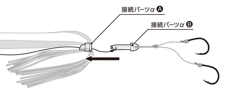 ワンタッチでフック交換可能な画期的なフック交換システム「α システム」のための接続パーツ。完全遊動システムのコンセプトそのままに実戦から生まれた新発想ユニットシステム。フックやネクタイ・スカートの速攻交換が可能で、収納時も別々に管理できるのでタックルケースでフックが絡み合うことがなく、ストレスフリーでタイラバゲームをより快適に楽しめる。