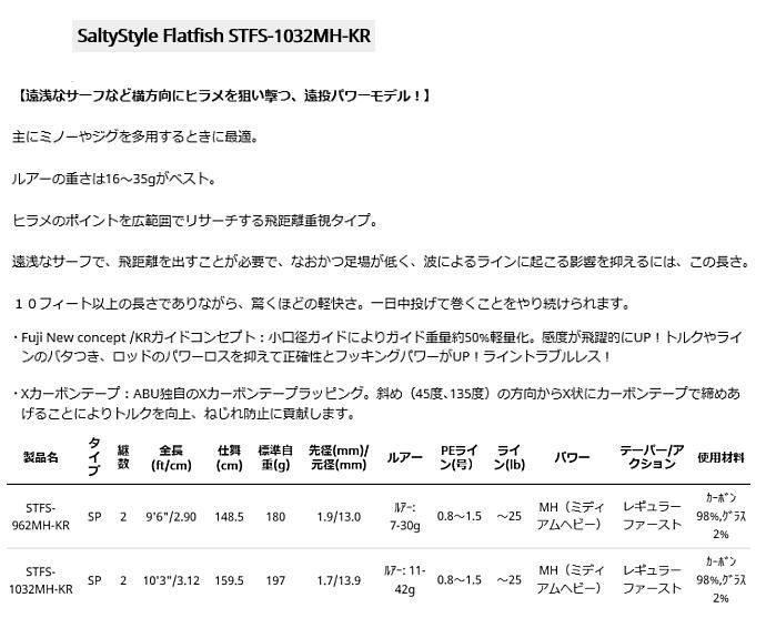 アブ ガルシア ソルティースタイルフラットフィッシュ STFS-1032MH-KR (スピニング) / ルアーロッド (OT) (SP) 【本店特別価格】