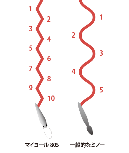 大阪湾のボートシーバス船キャプテンを務める北添貴行監修『MAYOL80S』。魚のいる位置まで急速潜行し、気づかせ、急浮上で食わすことをテーマに生まれたディープダイバー。MAX 2.5mの潜行レンジで、ストラクチャーのディープゾーンに潜む魚を攻略。細かなタイトピッチウォブリングで短い距離でもしっかりアピールする。マグネット重心移動を搭載し、風の抜けやすいストラクチャー周りを攻める際にも失速しない直進性を併せ持つ。