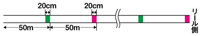船のふかせ釣りで必要なマーキングが50m(グリーンマーキング20cm)、100m(ピンクマーキング20cm)付いているのでアタリダナを確認しやすい
