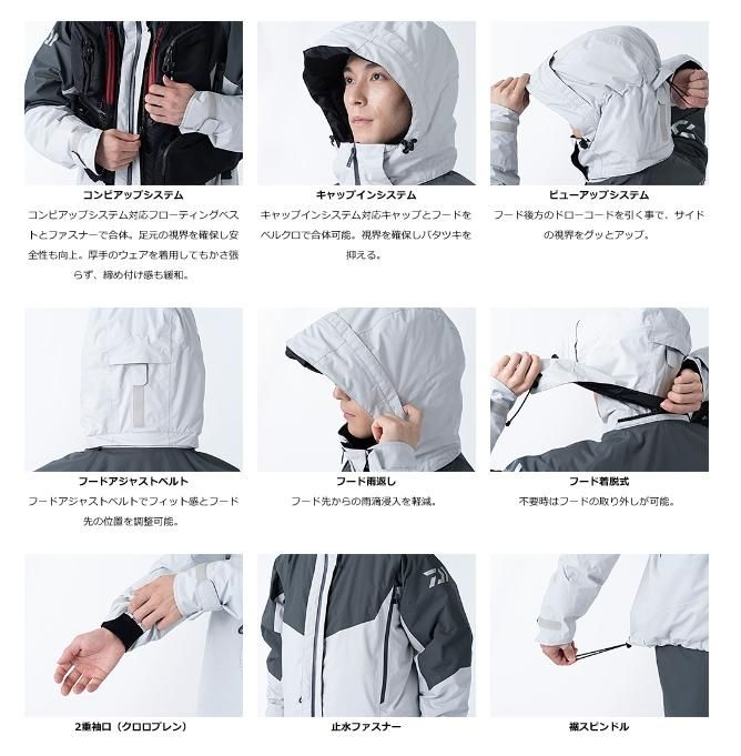 磯釣りにも有用な機能キャップインシステム、コンビアップシステム、ビューアップシステム、フード雨返しを搭載。