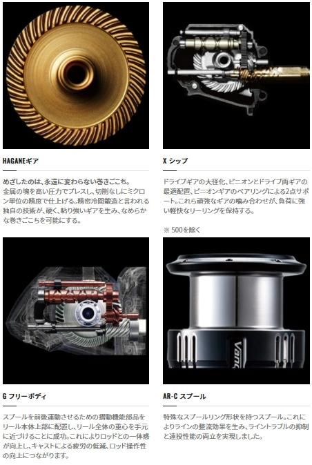 リールの回転を支えるメインギア部分にHAGANEギア採用でハードな使用にも対応。