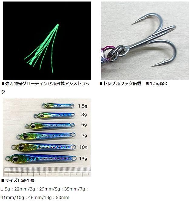 メバル、アジのみならずカサゴやメッキ、カマス、ショゴなどの小型回遊魚も狙える万能ジグ「プリズナー」が、SaqSasアシストフックに強力発光グローティンセルをまとってリニューアル。