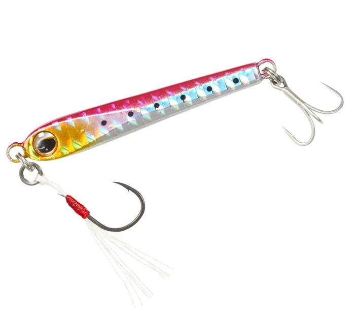 メバル、アジのみならずカサゴやメッキ、カマス、ショゴなどの小型回遊魚も狙える万能ジグ「プリズナー」が、SaqSasアシストフックに強力発光グローティンセルをまとってリニューアル。