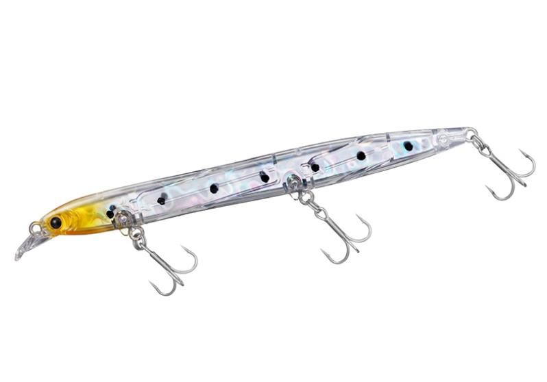 バチ、サヨリ、シラスはもとより、イワシや稚アユ等の小型ベイトパターンにベストマッチな極スリムシルエット。