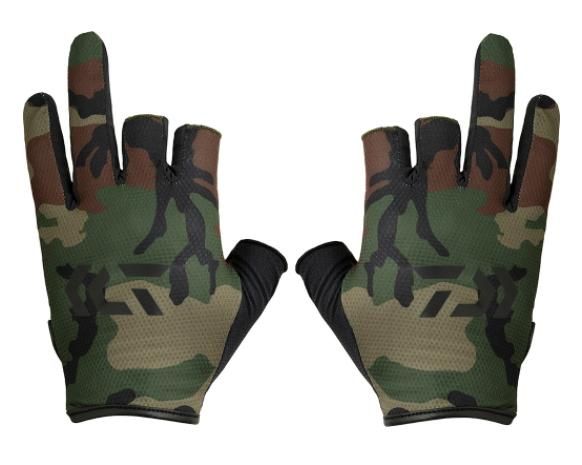 ダイワ 吸汗速乾ストレッチグローブ3本カット DG-6422 グリーンカモ XL / メール便可 / 釣具 / daiwa 【本店特別価格】