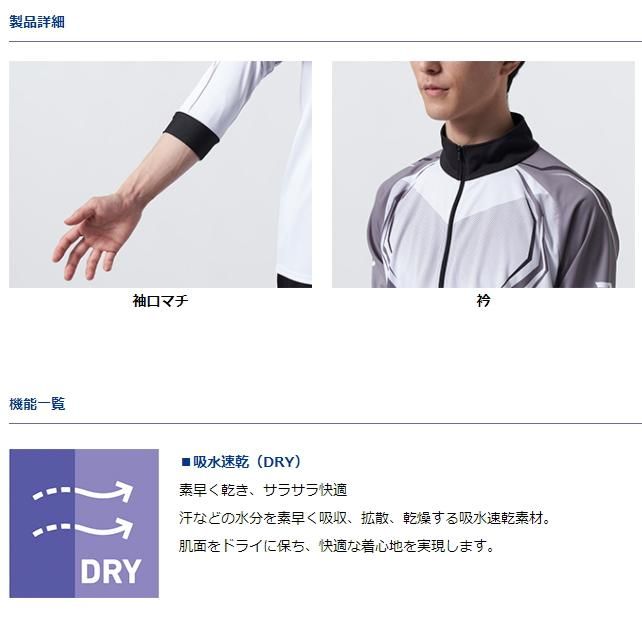 吸水速乾性、UVカット機能、ストレッチ性を兼ね備え、発汗時にもウエアが肌に密着し難く、ドライ感をキープする快適素材。