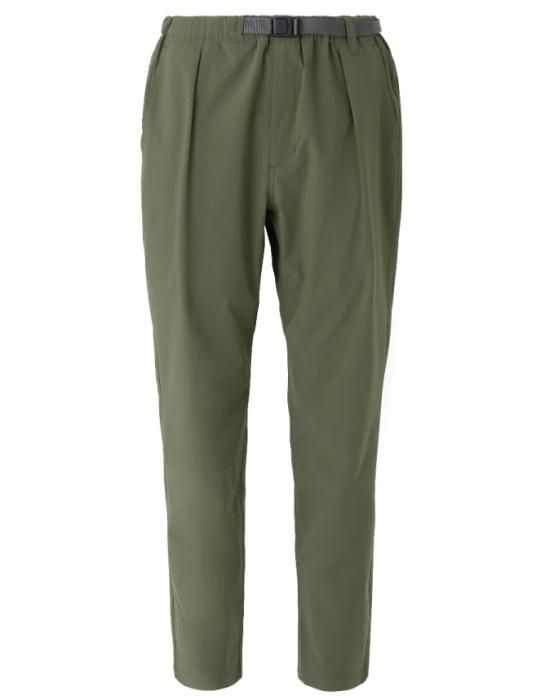 上品な生地感と洗練されたシルエットでカジュアルシーンにも使える。吸水・速乾でシワになりにくい高機能生地採用。股下ガゼットやベルトのバックル仕様などアクティブに使えるデティールも満載。