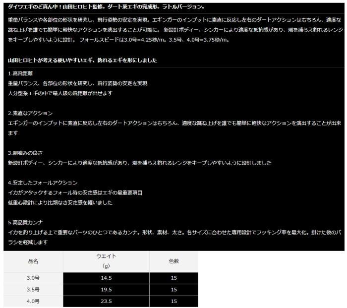ダイワエギのど真ん中!山田ヒロヒト監修。ダート系エギの完成形。ラトルバージョン。