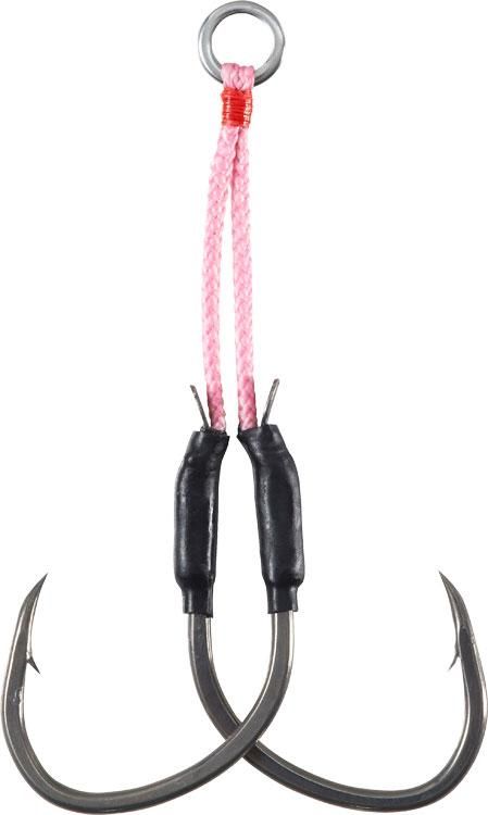 アシストラインが1cm・2cm・3cmとあるので様々なサイズのジグにベストなセッティングが可能。リーダーやジグに絡みにくいフロロ芯入アシストライン。絡みを抑えて2本掛かりしやすい根付部セキ糸巻き。ヘビースペック(2cm)は大型青物でも安心の太軸フック仕様。驚異の貫通力サクサスフック。