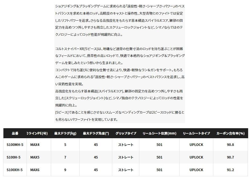 シマノ コルトスナイパー XR MB S100MH-5 / ショアジギングロッド / shimano 【本店特別価格】