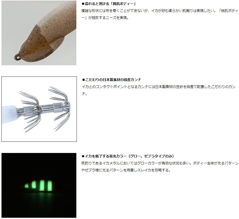 表面加工にもこだわり、濡れると透ける「桃肌ボディー」はイカが好む布ライクな肌触りに加え、濡れると下地が透けて浮き出てくる。