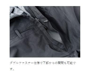 ●メインファスナーは止水性を高める両比翼仕立てのダブルファスナー仕様(YKK)
