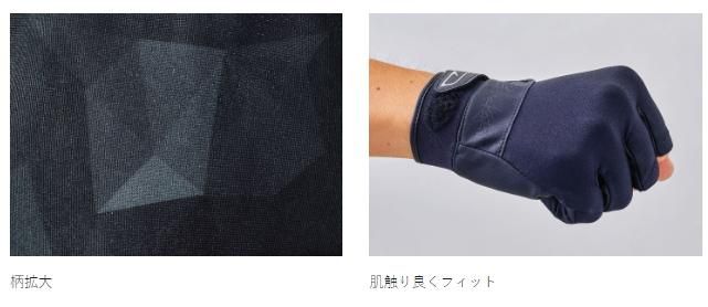 ●プリント加工&指先カット部分の千鳥縫いにより、ストレッチ性能を阻害せず、握りやすい設計。